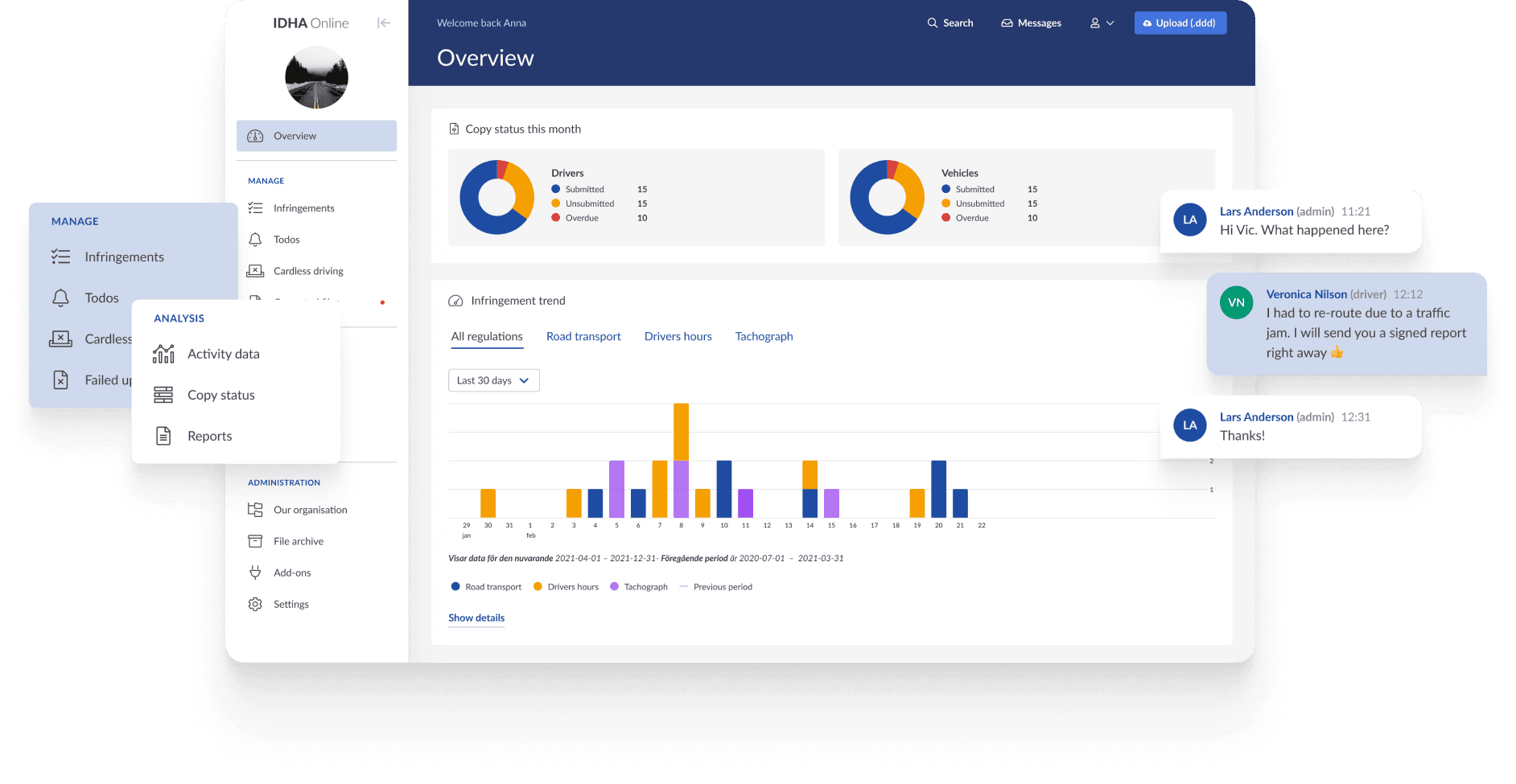 Create a smarter, digital workflow by enabling your drivers to use Idha Online on the road. With the driver login in Idha Online, it’s easy to digitally administer, sign, and manage infringements immediately, keeping you up to date and eliminating unnecessary paperwork.
